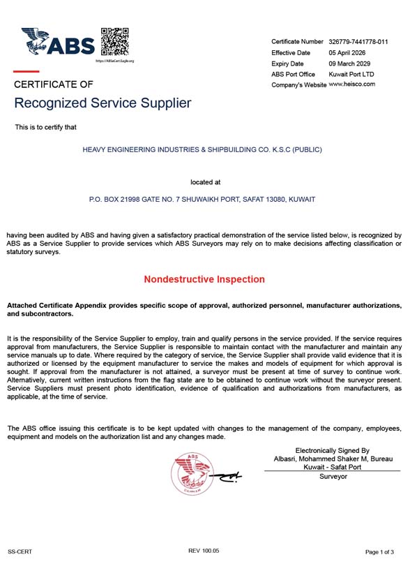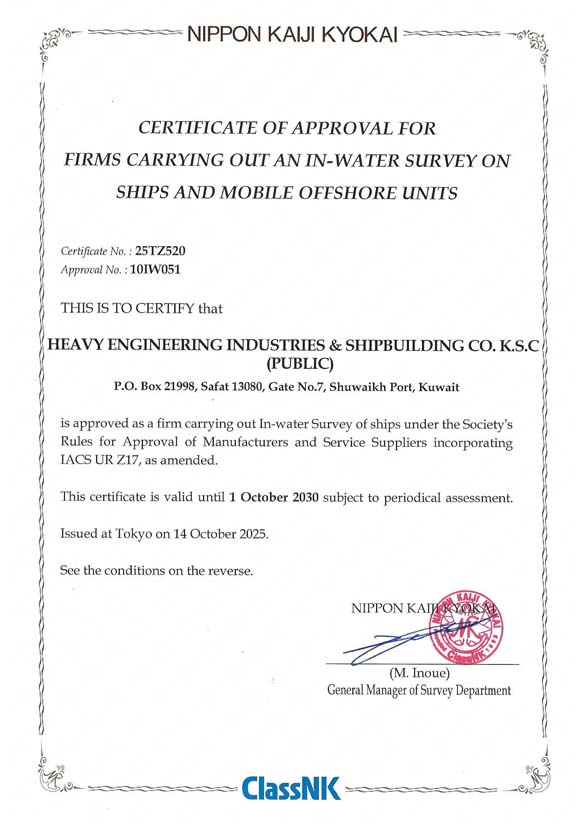 Strategically positioned within Kuwait’s prime maritime hub, “Shuwaikh Port”, HEISCO offers a comprehensive range of marine services. The shipyard is equipped with a cutting-edge facilities, coupled with a highly skilled yard management team, a perfect combination to ensure exceptional precision and efficiency in all operations.Specializing in Ship Repair, Ship Rehabilitation/ Refurbishment, Shipbuilding, extends toOffshore and Professional Diving Services, as well as Fleet Management and Operations. With a proven track record delivering outstanding results, HEISCO is a leading provider to the local, regional, and international maritime industry.